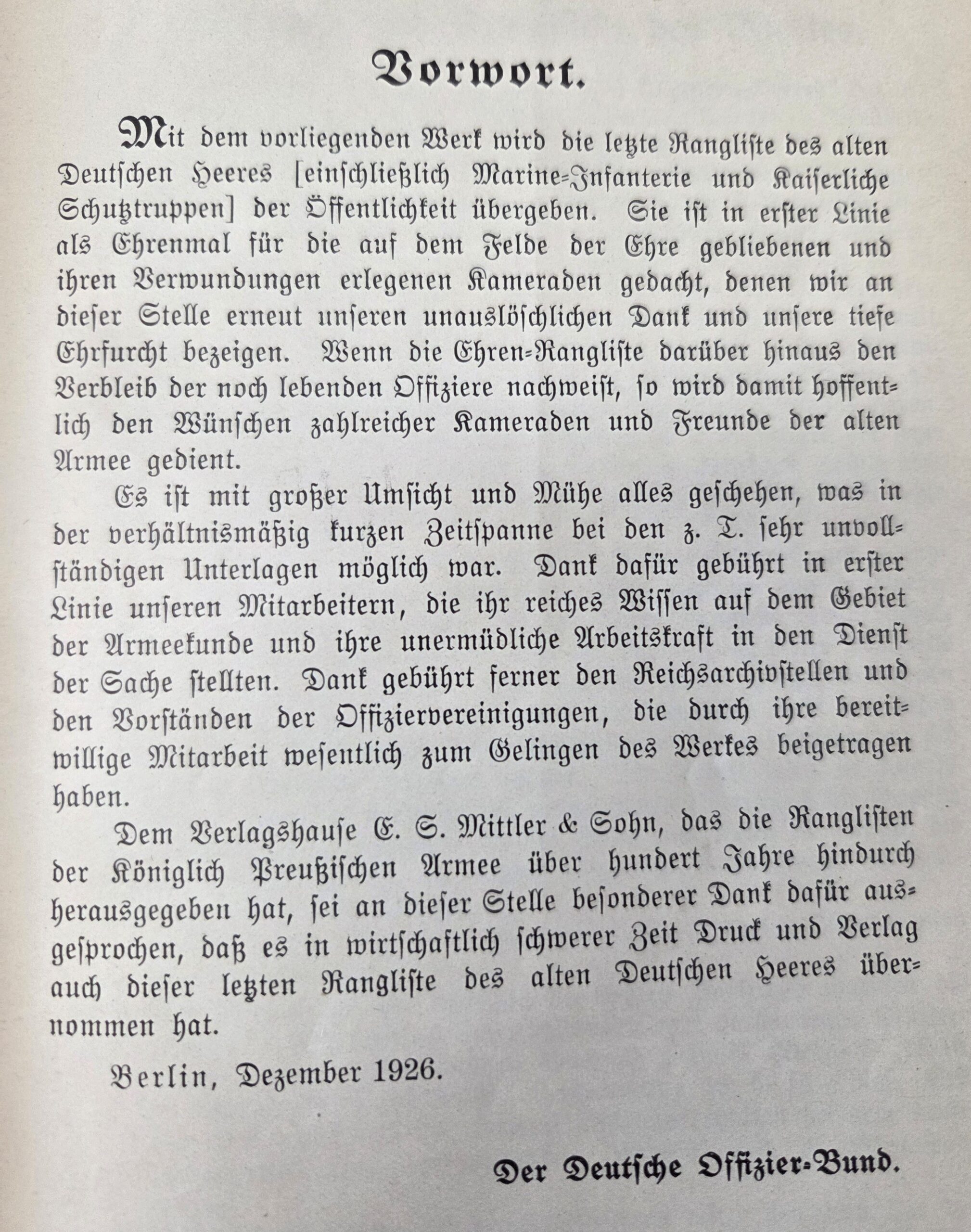 Honor list for the German Army. This is a 4-year Honor rank list consisting of some 1,275 pages, and provides complete details on literally thousands of Army Officers. EX+